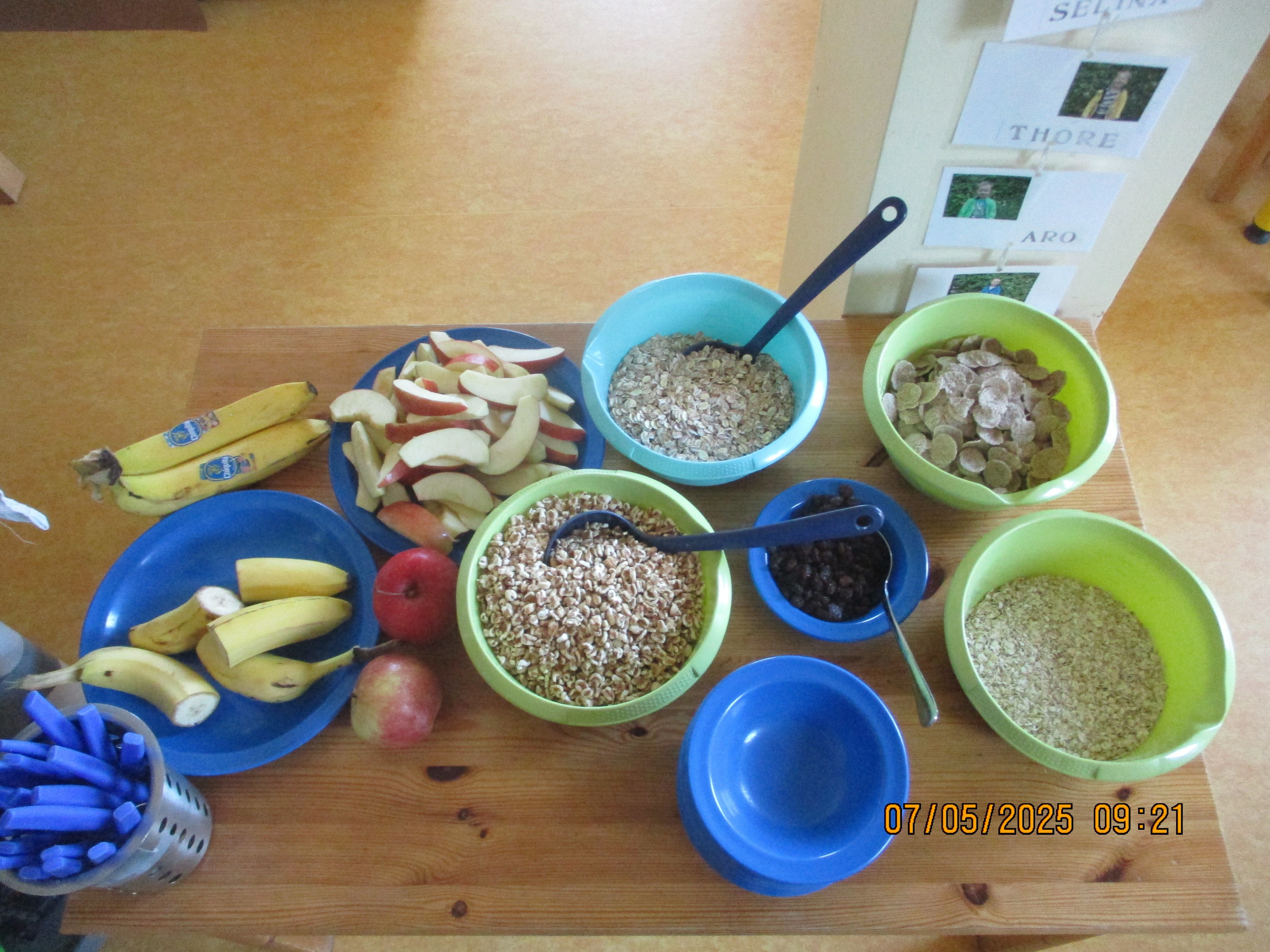 In den darauffolgenden Tagen konnten die Kinder ihr neues Wissen gleich anwenden und ihr eigenes gesundes Frühstück zusammenstellen. Frische und gesunde Lebensmittel standen dabei natürlich im Mittelpunkt.